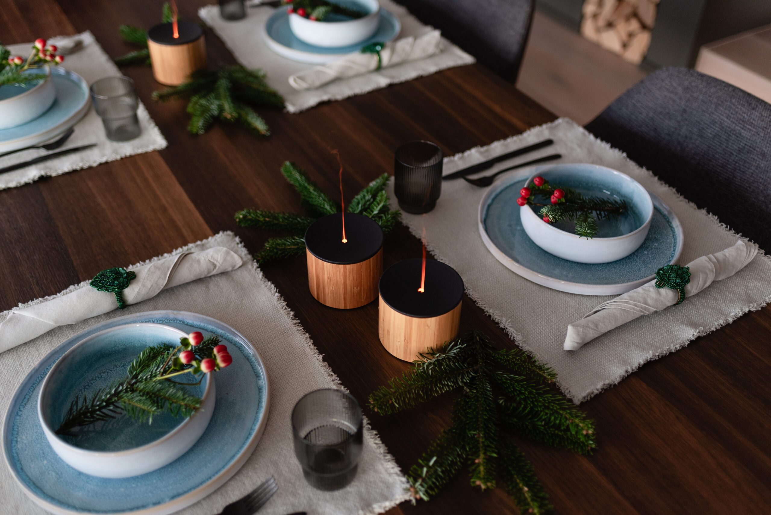 Nora vereint natürliche Materialien wie Bambus und hochwertiges Aluminium. Ihr elegantes Erscheinungsbild fügt sich perfekt in die festliche Weihnachtsdekoration ein und sorgt für eine russfreie Candle-Light-Stimmung. Egal, ob bei einem Glühwein auf dem Balkon oder bei einer heissen Tasse Schokolade auf dem Sofa – sie kommt als Begleiterin sowohl im Innen- als auch im gedeckten Aussenbereich zum Einsatz und bereichert lange Winterabende. Mit einer Akkulaufzeit von bis zu 7 Stunden bleibt Nora auch bei ausgedehnten Weihnachtsfeiern mit der Familie zuverlässig im Einsatz.