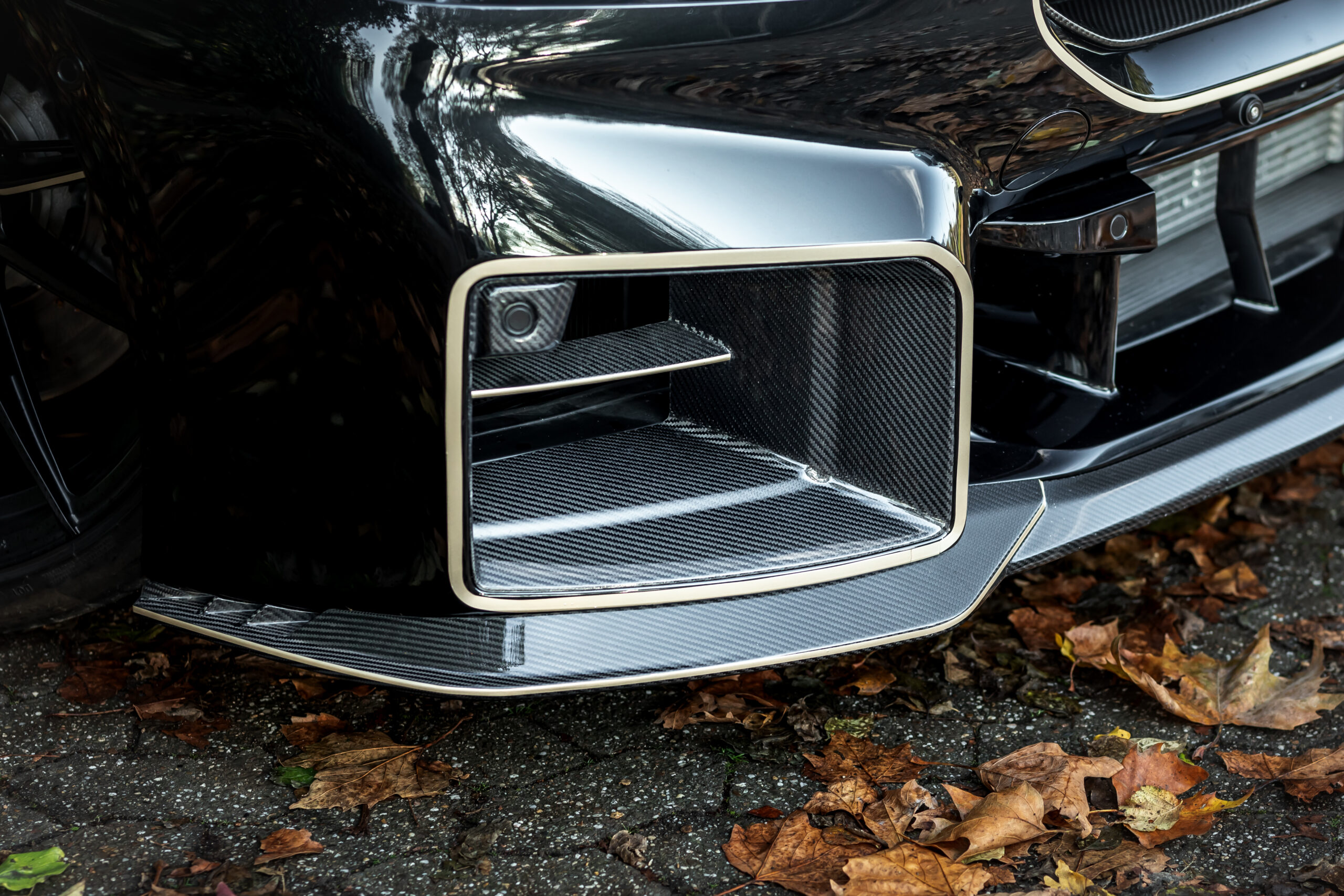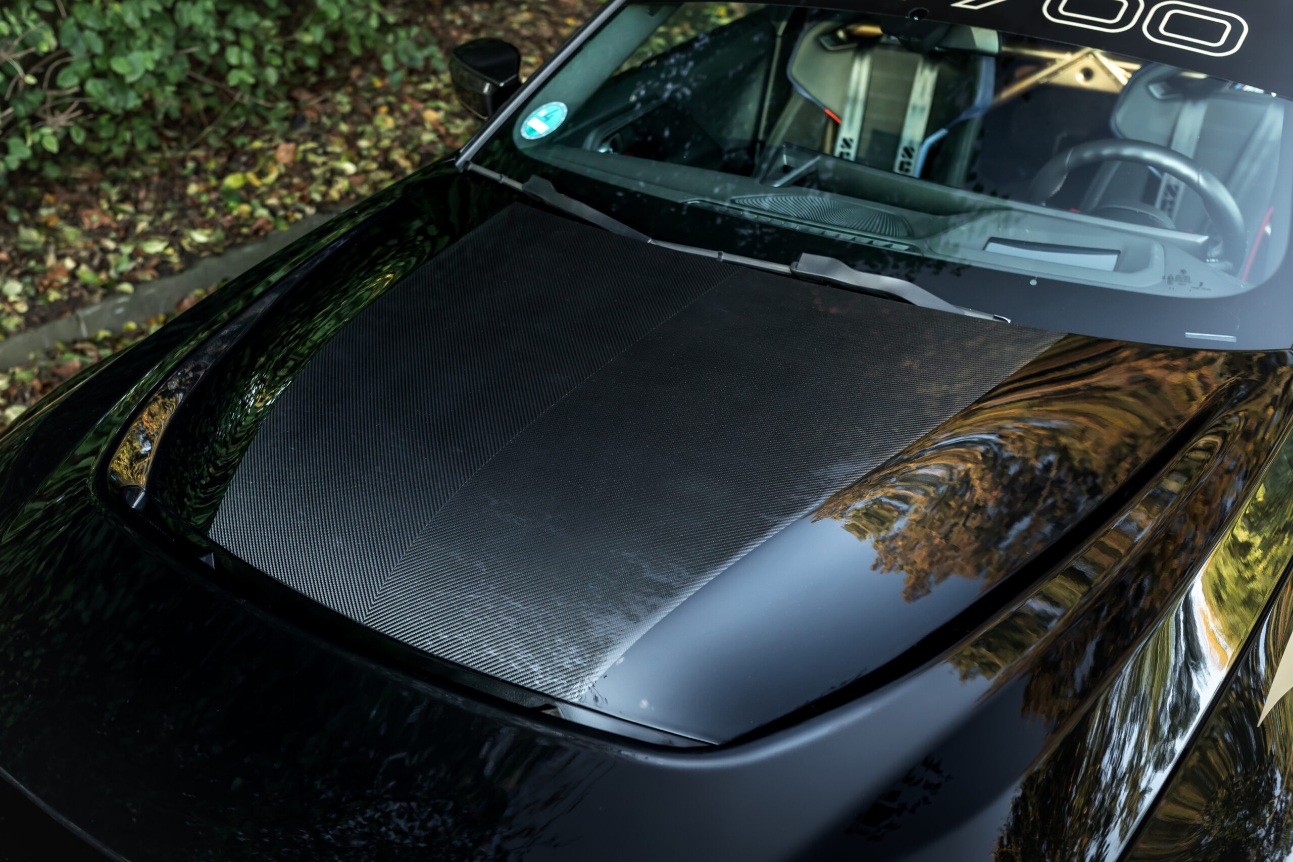 Die Karosserie präsentiert sich ebenfalls umfangreich veredelt, MANHART installierte eine ganze Armada hauseigener Carbon-Anbauteile: Aus eigenem Hause stammen so etwa die Carbon-Einsätze für die vordere Schürze sowie die Carbon-Seitenschweller. Ergänzend installierte MANHART sowie eine Carbon-Motorhaube, Carbon-Nieren, einen Carbon-Frontspoiler, einen Carbon-Diffusor, einen Carbon-Heckflügel und eine Carbon-Unterbodenverkleidung by Alpha-N.
