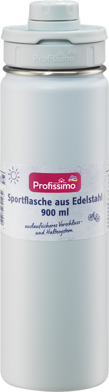 Die Sportflasche aus Edelstahl von Profissimo ist der perfekte Begleiter im Alltag. Mit einem Fassungsvermögen von 900 ml bietet sie ausreichend Platz für Getränke und überzeugt durch ihren auslaufsicheren Trinkverschluss sowie den praktischen, einklappbaren Haltegriff. Dank der kleinen Öse am Deckel lässt sich die Flasche mühelos mit einem Karabiner oder Schlüsselring an einer Tasche oder einem Rucksack befestigen. Hergestellt aus rostfreiem, lebensmittelechtem Edelstahl vereint sie höchste Qualität und Funktionalität in einem ansprechenden Design.