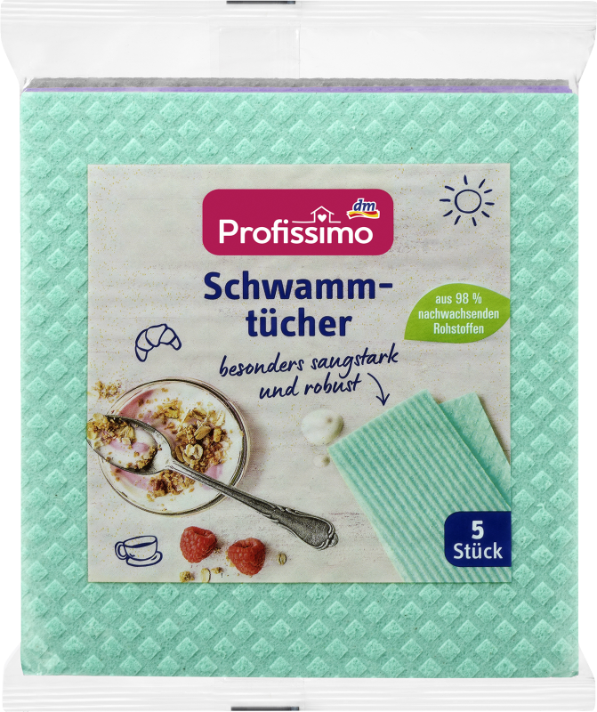 Die Schwammtücher von Profissimo überzeugen durch ihre hohe Saugleistung und Robustheit. Sie sind rei ss- und abriebfest, was sie besonders langlebig macht und sie zu einem unverzichtbaren Helfer im gesamten Haushalt werden lässt. Ob zum Wischen, Reinigen oder Spülen in der Küche, zum Aufwischen im Bad oder zur Reinigung glatter Oberflächen – diese Schwammtücher sind vielseitig einsetzbar. Mit einer beeindruckenden 15-fachen Wasseraufnahme sorgen sie für gründliche Sauberkeit. Zudem bestehen sie zu 98 % aus nachwachsenden Rohstoffen und sind somit nicht nur effektiv, sondern auch umweltfreundlich.