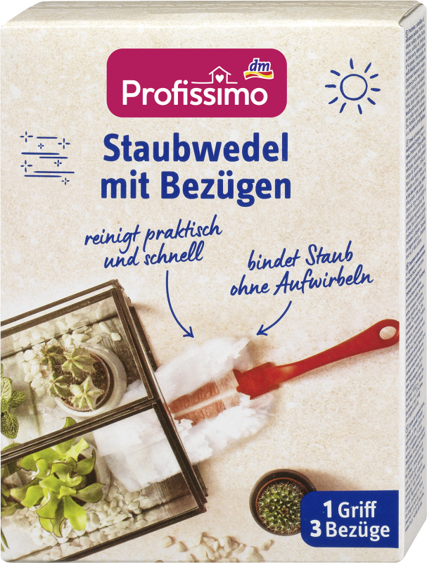 Das Profissimo Staubwedel-Set bietet eine praktische und schnelle Lösung für die effiziente Reinigung von Staub und Schmutz. Mit seinem ergonomischen Griff und den drei mitgelieferten Staubwedelbezügen ermöglicht es müheloses Staubwischen, selbst an schwer zugänglichen Stellen. Die mikrofeinen Fasern der Bezüge nehmen Staub, Schmutz und Haare wie ein Magnet auf, ohne diese aufzuwirbeln, und sind dabei auch für empfindliche Oberflächen bestens geeignet. Vielseitig einsetzbar im Haushalt, Büro oder Auto, eignen sich die Staubwedelbezüge für Möbel, Heizkörper, Pflanzen, Jalousien, Fernseher, Computer und vieles mehr.