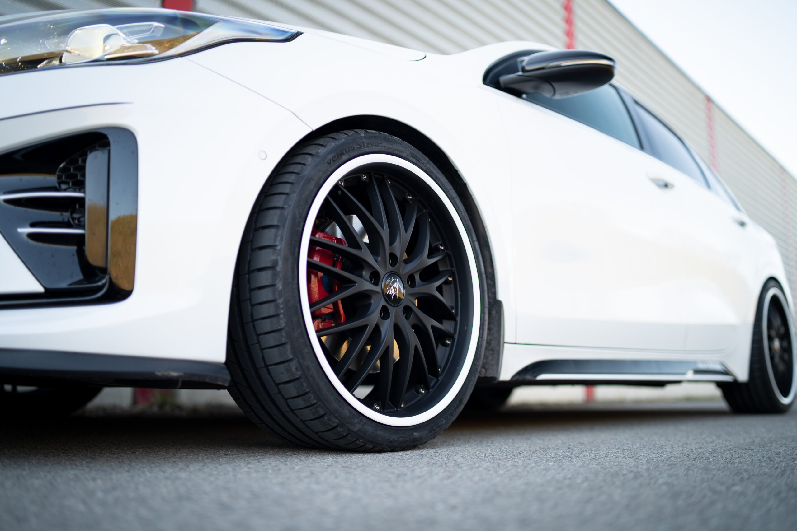 Auch farblich passen die Voltec T6 mit ihrem Finish in Matt Black Puresports samt weisser Trimline perfekt in das schwarz-weisse Two-Tone-Styling des Kias, der sich abrundend durch verschiedene weitere Tuning-Details wie eine EZ-Lip unter der Frontschürze und einen Diffusor-Ansatz am Heck auszeichnet.