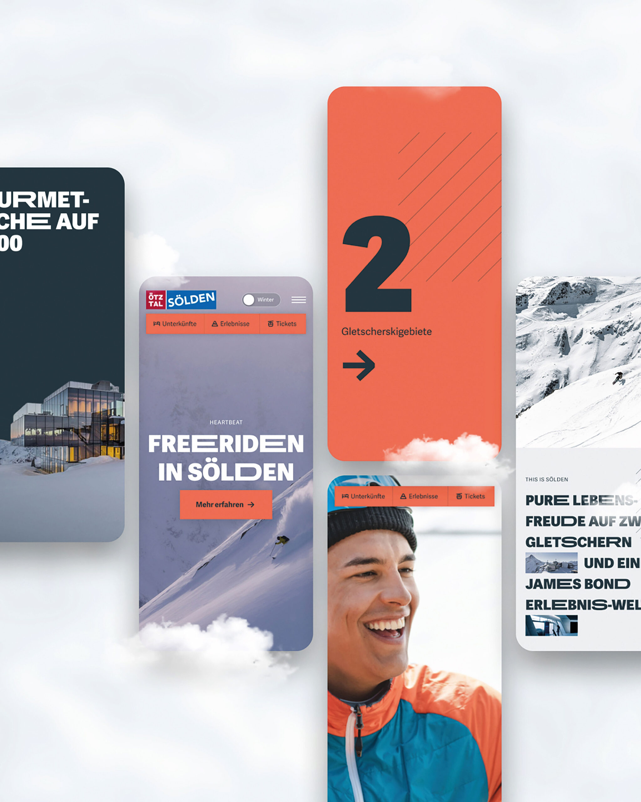 - Einheitliches Designsystem als Grundlage der individuellen Identitäten der drei Marken Ötztal, Sölden und Gurgl