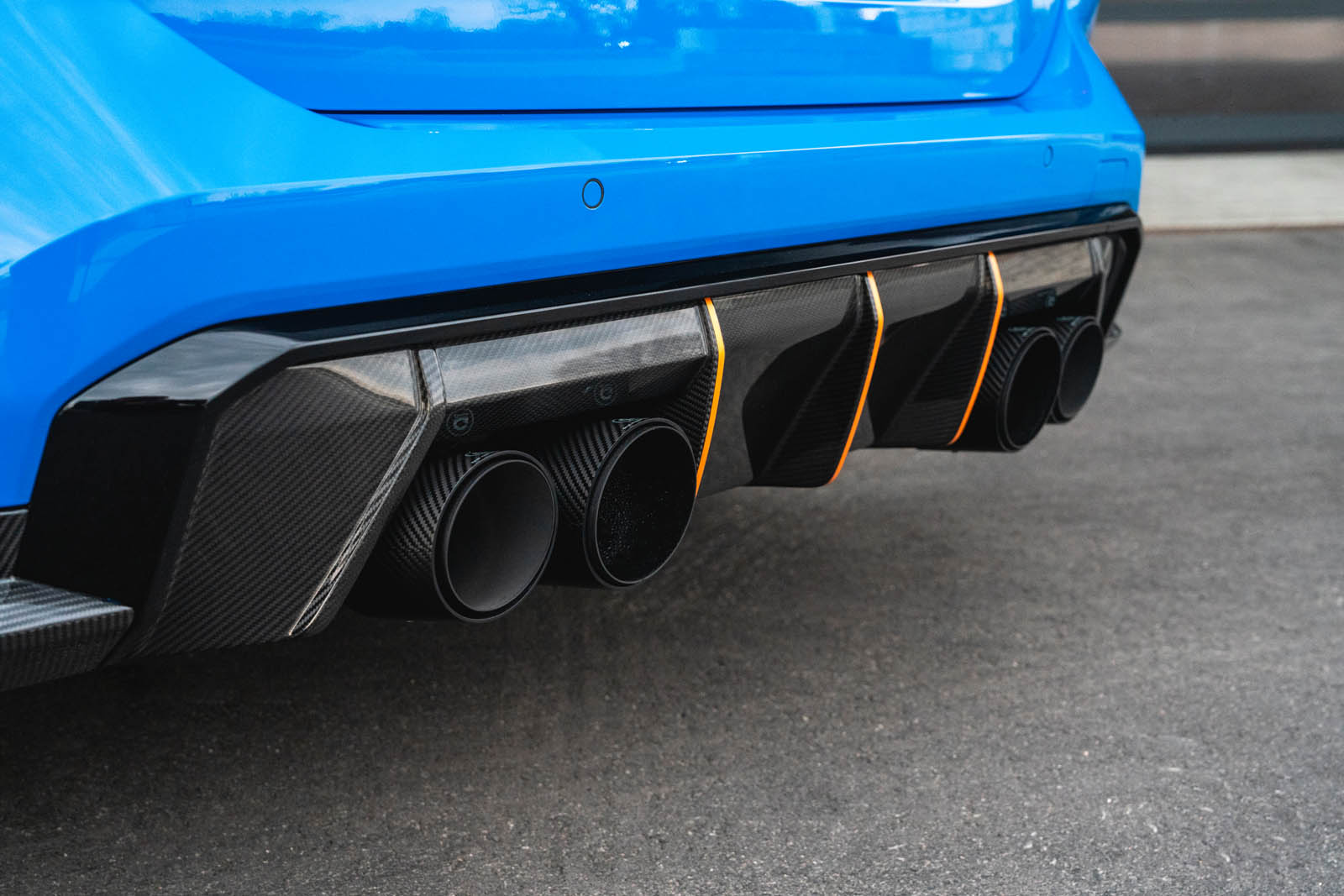 Sie kommen im Zusammenspiel mit der Performance Software GP-800, und der sich durch Sport-Downpipes mit 200-Zellen- High-Flow-Metall-Katalysatoren anschliessenden G-POWER DEEPTONE- Abgasanlage zum Einsatz. Letztere setzt sich aus einem Mittelschalldämpfer sowie einem Endschalldämpfer mit je zwei Carbon-ummantelten 100-mm- und 110-mm- Endrohren zusammen. Sie sorgt für eine Verringerung des Gegendrucks und der Temperatur der Abgase sowie einen optimierten Strömungsfluss. Dank der Vmax- Anhebung kann der G3M seine Power in bis zu 330 km/h ummünzen.