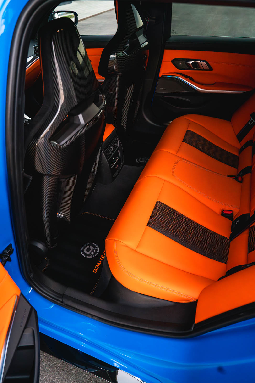 Im Innenraum sorgen zu guter Letzt feine Details wie die G3M Bi-TURBO-Plakette und die G3M Bi-TURBO-Teppiche aus Premium-Velours für individuelle G-POWER-Akzente. Des Weiteren gibt es optional gibt es auf Wunsch ein G-POWER-Carbon-LED-Lenkrad.