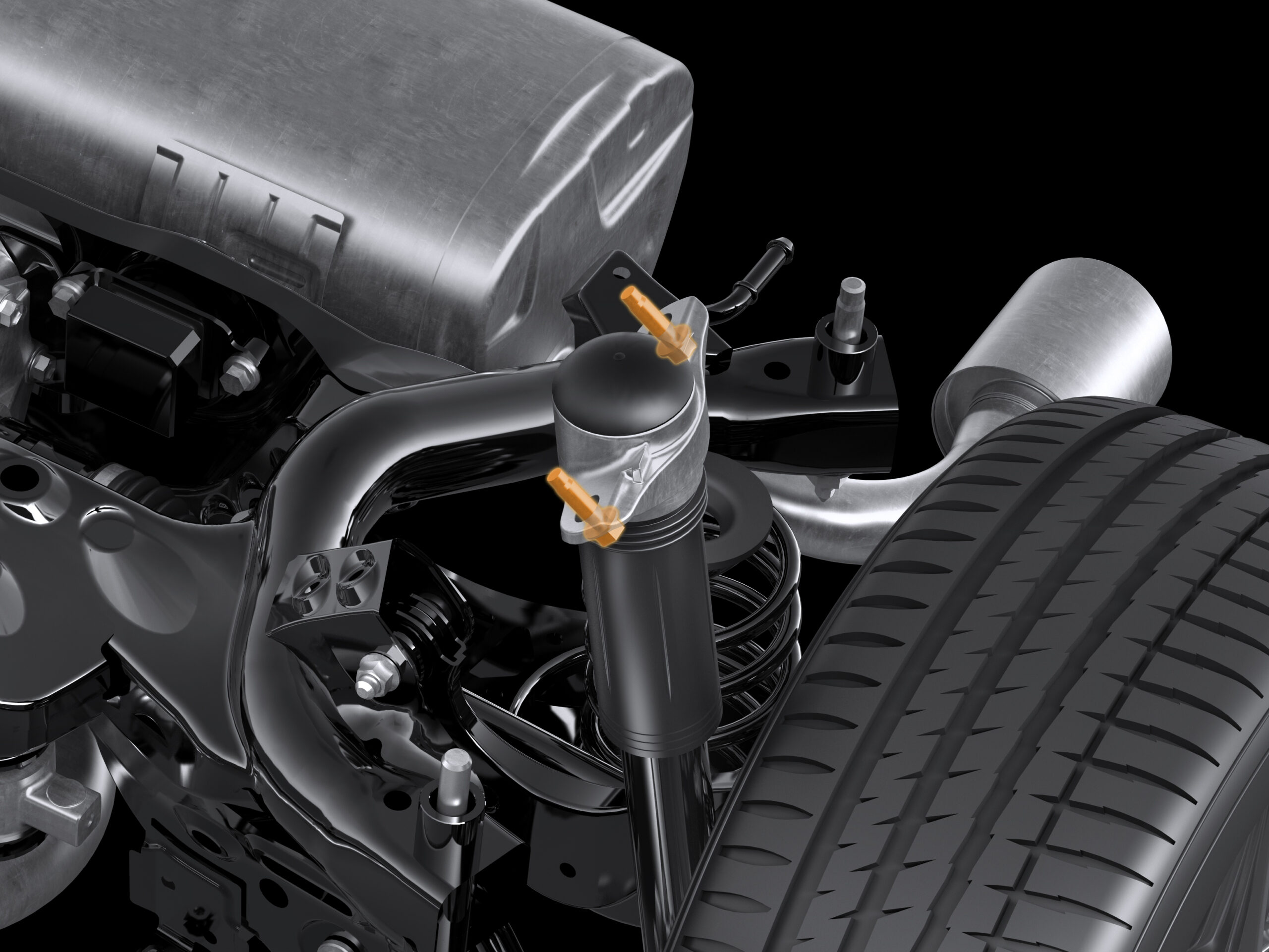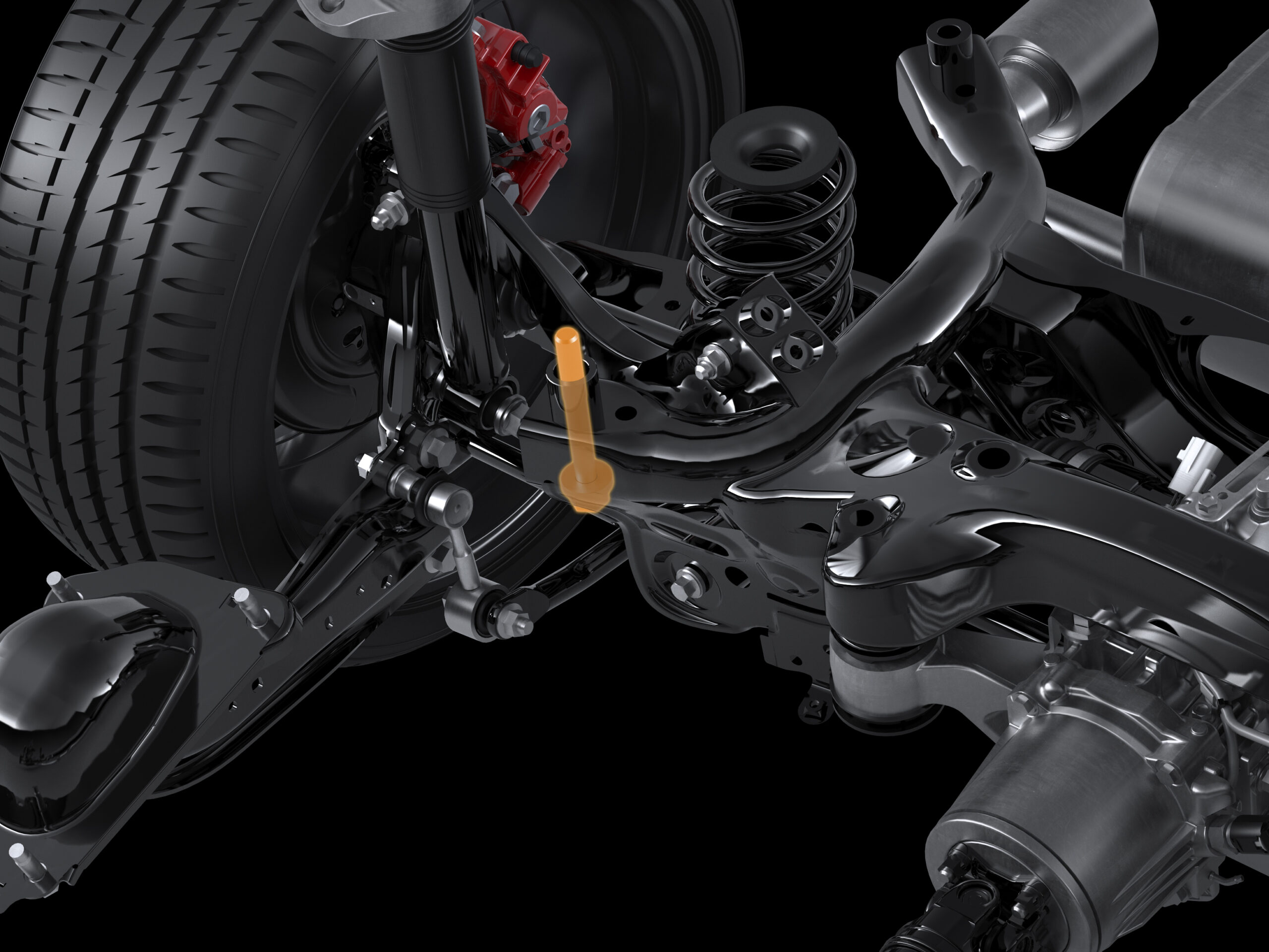 Das Gefühl der Verbundenheit mit dem Fahrzeug wird durch die Verbesserung des Lenkverhaltens und des Geradeauslaufs unter Verwendung spezieller Schrauben mit höherer Steifigkeit erzeugt. Ein breiterer Schraubenkopf verbindet die hinteren Aufhängungselemente mit der Karosserie, während die Schrauben zur Befestigung der vorderen unteren Querlenker und der unteren Kugelgelenke sowie der hinteren Stossdämpfer und der Karosserie einen neuen gerippten Flansch aufweisen. Die Fahrwerkseinstellungen wurden an diese Änderungen angepasst, ebenso wie das erhöhte Drehmoment, mit dem einige der herkömmlichen Schrauben angezogen werden.