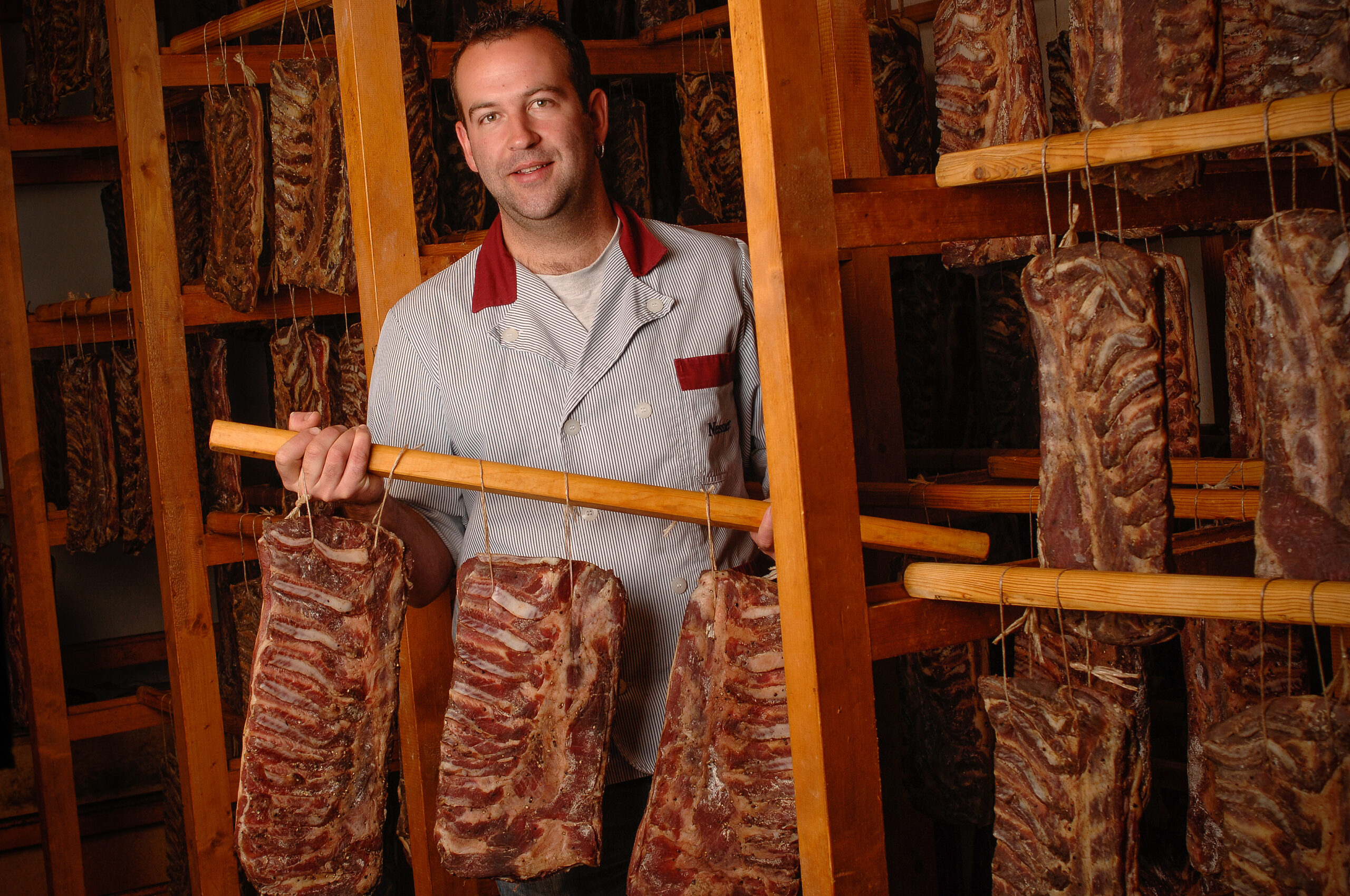 Rohessspeck, Trockenwurst, Walliser Rohschinken und das berühmte Viande séchée du Valais (getrocknetes Rindfleisch) gehören zu jedem Apéro. Luftgetrocknet auf 1500 m Höhe, ohne künstliche Zusatzstoffe – ein echtes Stück Kultur.