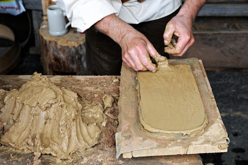 Traditionelle Ziegel und Schieferplatten werden heute in spezialisierten Manufakturen nach historischen Vorlagen gefertigt. Wesentlich ist nicht nur das Format, sondern auch Farbe, Brandverhalten und Oberflächenstruktur. Diese beeinflussen das Erscheinungsbild ganzer Ensembles.
