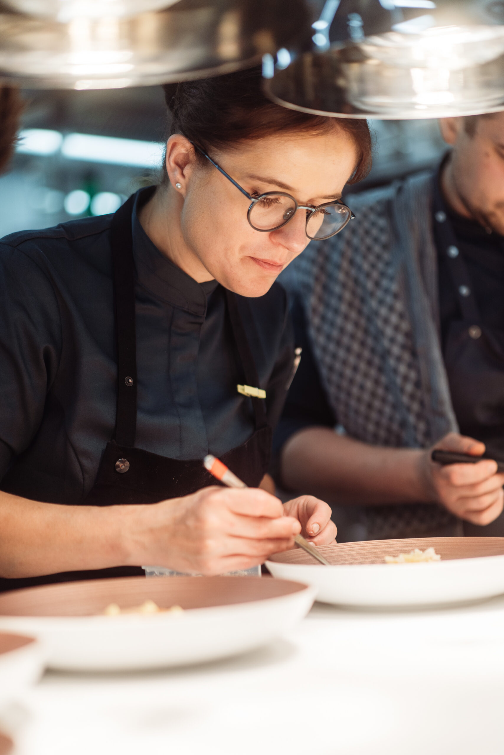 „Unsere Küche ist klar, produktfokussiert und verbindet regionale Verwurzelung mit weltoffener Aromatik“, so Cornelia Fischer. „Wir möchten zeigen, wie vielseitig einzelne Zutaten sein können – ob Gemüse, Kräuter oder Getreide. In unterschiedlichen Texturen und Garmethoden entstehen daraus leichte, präzise Kompositionen.“ Reduktion statt Inszenierung, feine Säure, prägnante Würze und ein ausgeprägtes Sensorik-Bewusstsein prägen ihre Handschrift.