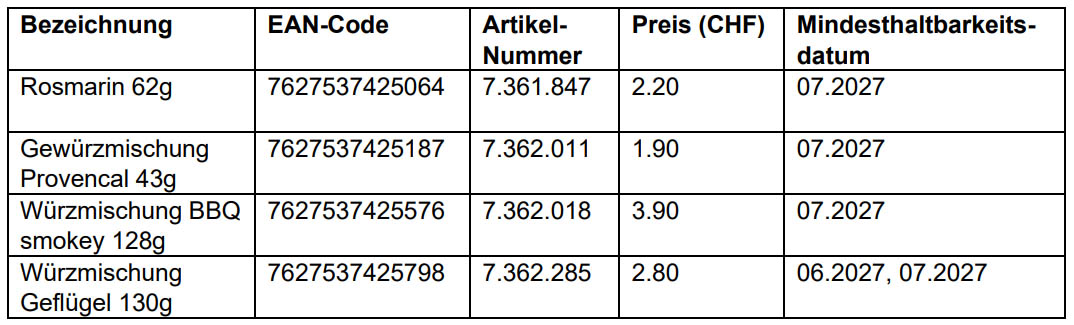 Coop Rückruf: Rosmarin‑Gewürzprodukte wegen Salmonellen nicht konsumieren
