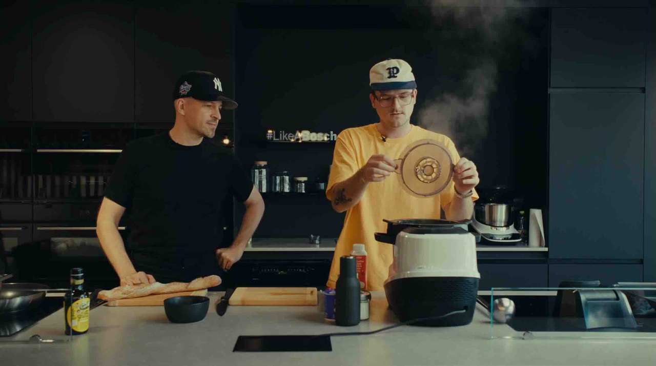 Sowohl Stress als auch Noah Bachofen sind vertraute Gesichter für Bosch. Als Markenbotschafter ist Stress nicht nur die Stimme der Schweizer #LikeABosch-Kampagnen, sondern stand auch bereits mehrfach für die Hausgerätemarke vor der Kamera. Mit Noah Bachofen hat Bosch Home schon zahlreiche Rezeptvideos und 2023 die Co-Creation-Serie „Gemüseroulette“ umgesetzt. Für die zweite Staffel von „Special Guest“ beweist das Duo nun erneut seine kreative Chemie am Herd.