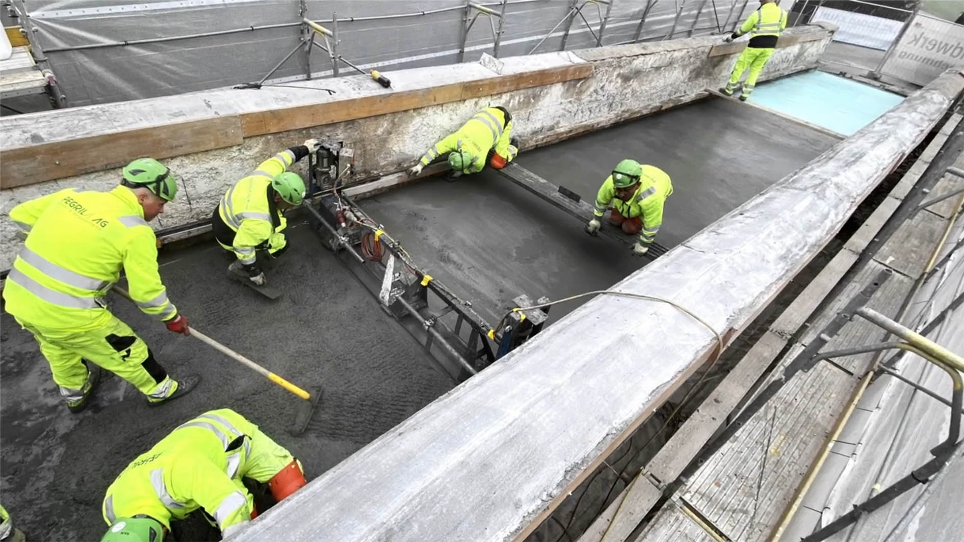 - eine sorgfältige Betoninstandsetzung unter Wahrung der originalen Schalstruktur