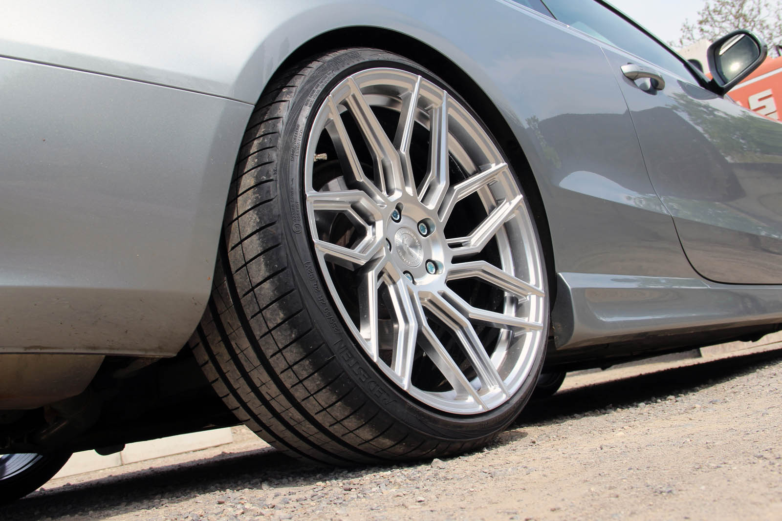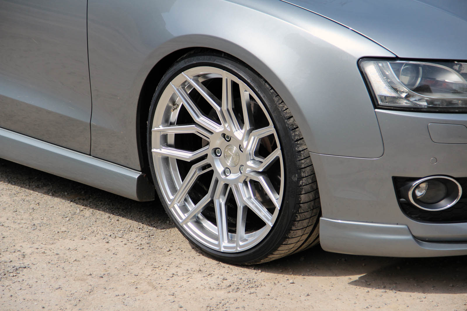 Optisches Highlight des von JMS Fahrzeugteile aufgebauten Projektfahrzeugs sind zweifellos seine dynamisch asymmetrisch gezeichneten Felgen: Es handelt sich um Dragoon-Räder aus dem Programm von Barracuda Racing Wheels. Für die hochwertigen Produkte dieser Marke verantwortet JMS bekanntlich – mit Ausnahme der Schweiz – den weltweiten Vertrieb. Die Räder messen am Ingolstädter rundum 10×20 Zoll und tragen Bereifungen in 255/30R20. Mit ihrem klassischen Finish in Hyper Silber fügen sie sich zudem hervorragend in das farbliche Gesamtkonzept des Wagens ein.