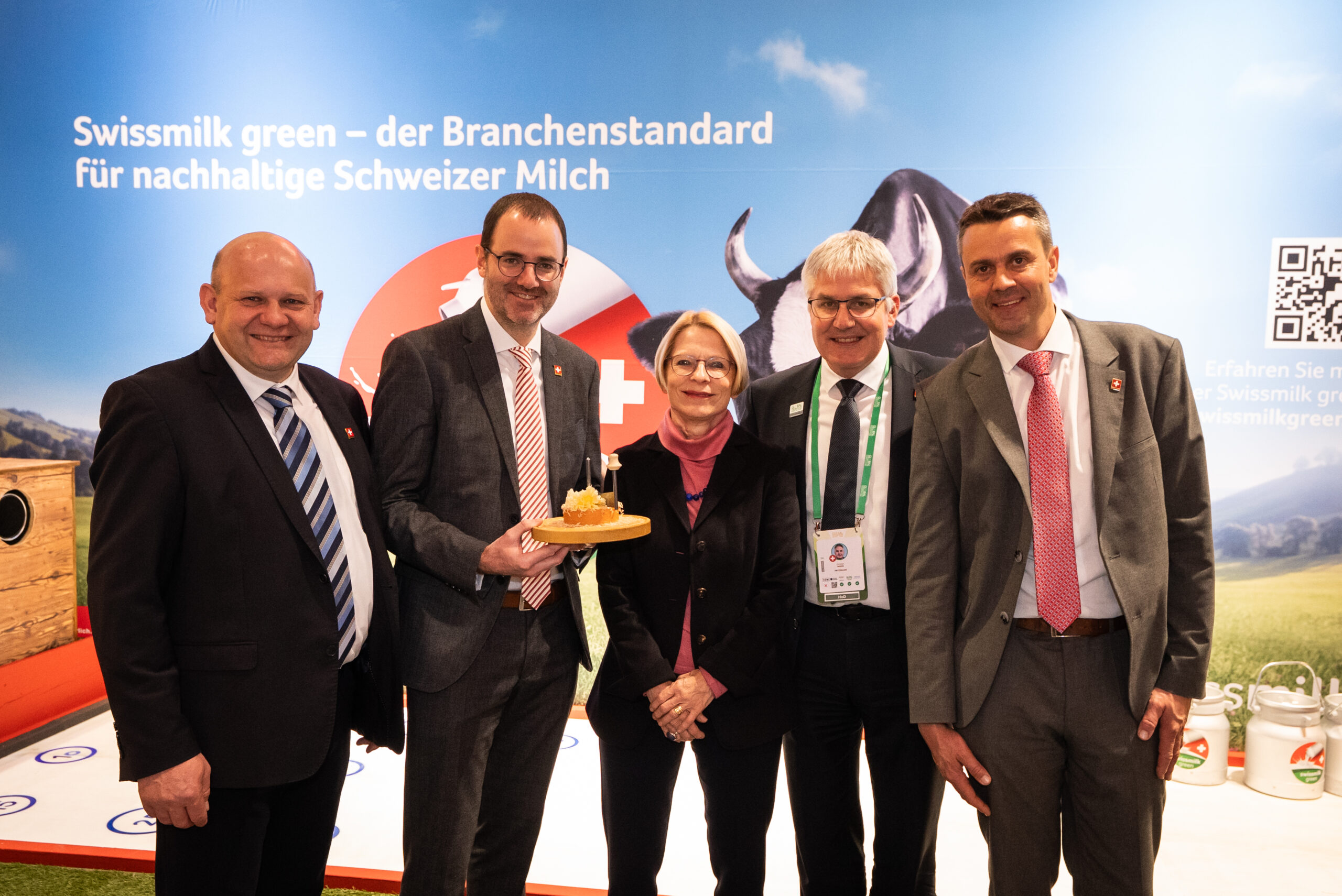 Milch ist seit jeher ein zentrales Element der Schweizer Landwirtschaft und bildet bis heute die Grundlage hochwertiger Produkte wie der Schweizer Käse oder der Schweizer Schokolade. Die konstant hohe Qualität der Schweizer Milch steht dabei sinnbildlich für Kontinuität und Fortschritt. Auch die Schweizer Botschafterin Livia Leu informierte sich vor Ort über diese Entwicklung und beteiligte sich gemeinsam mit Christian Hofer, Direktor des Bundesamts für Landwirtschaft (BLW), und Michel Darbellay (Präsident AMS Agro-Marketing Suisse) am interaktiven Teil der Ausstellung. Beim Milchkannenschieben zeigten sie sichtlich Freude – ein Erlebnis, das auch den Besucherinnen und Besuchern offensteht, die ihre Geschicklichkeit selbst testen können.