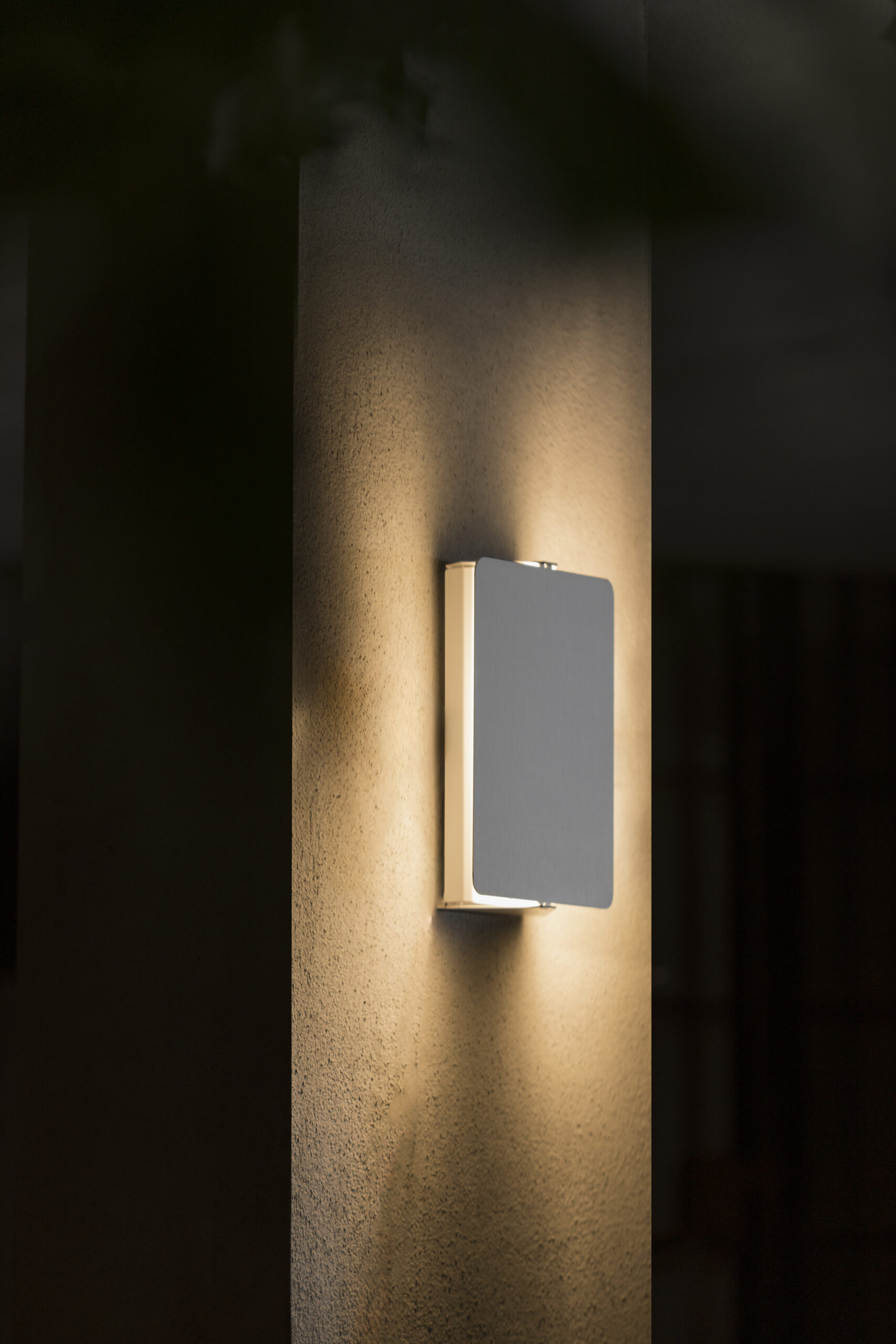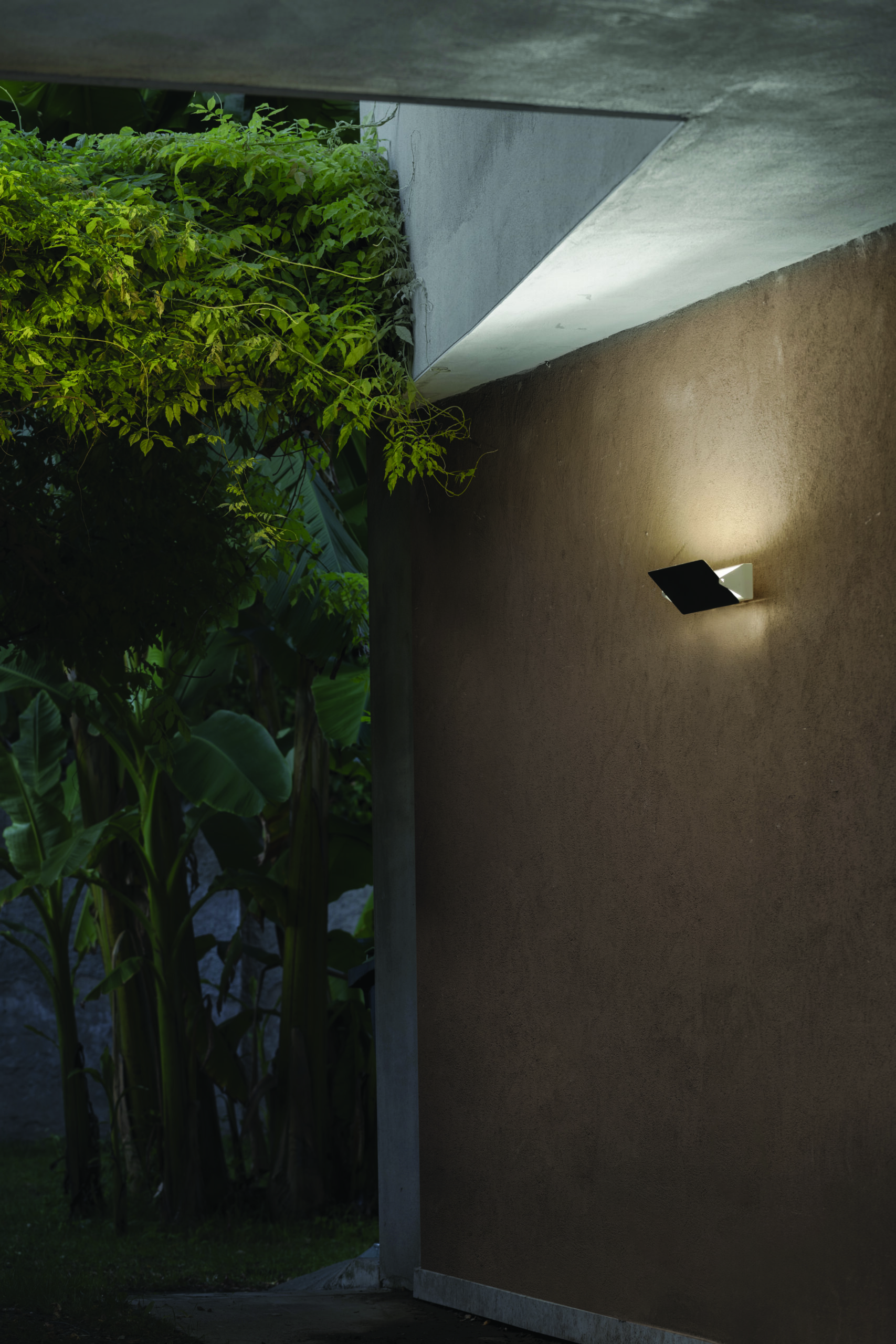 Die Outdoor-Version bewahrt den Geist des Originals und ergänzt ihn um technische Verbesserungen. Die Leuchte verfügt über ein verstellbares Volet und eine Aluminiumstruktur, die indirektes Licht an die Wand sowie einen schwenkbaren Flutlichtstrahl aussendet. Das Gehäuse wurde überarbeitet, um eine höhere Wasserbeständigkeit (IP54) und mechanische Festigkeit zu gewährleisten, bei gleichzeitig diskretem Erscheinungsbild.